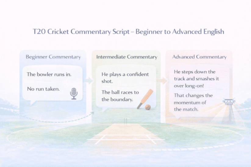 If you want to improve your spoken English naturally, practicing T20 cricket commentary is one of the most effective and enjoyable ways to do it.